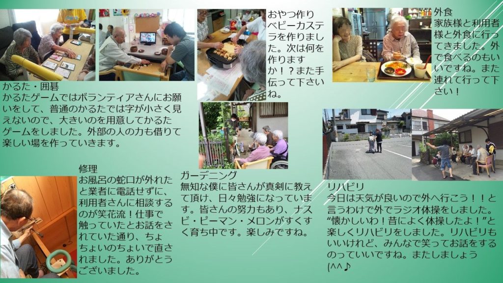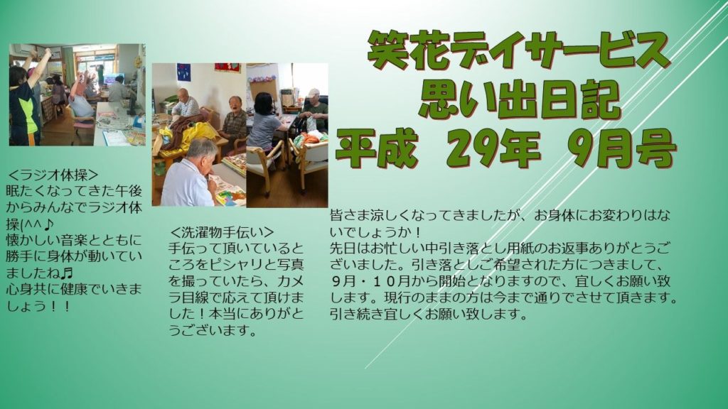 私たちは利用者様・お客様を第一に考えていくデイサービスです。